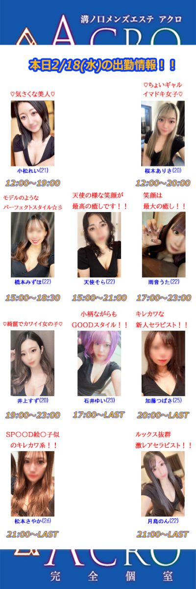 2月18日(水)の出勤情報・イベント情報!!