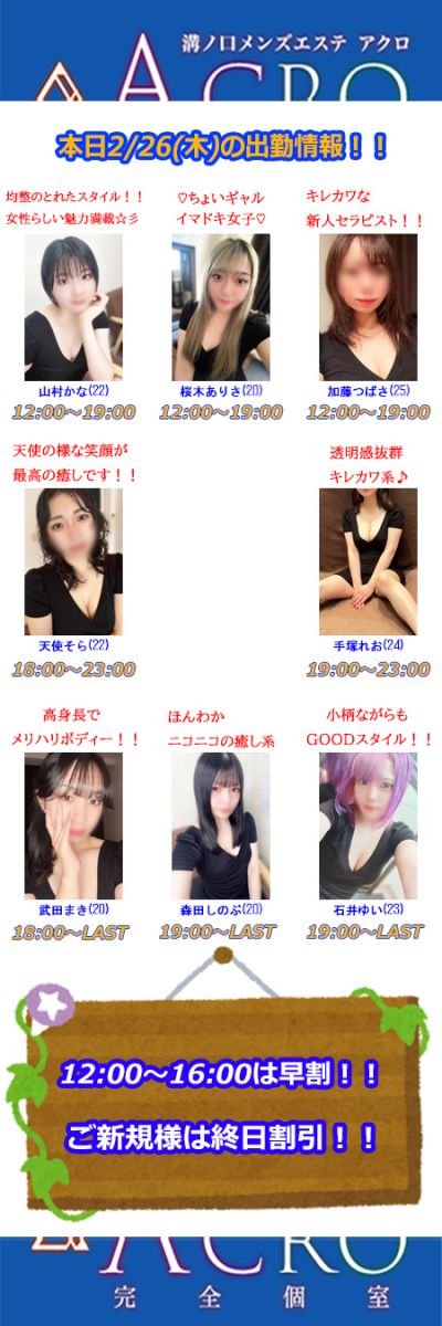 2月26日(木)の出勤情報・イベント情報!!
