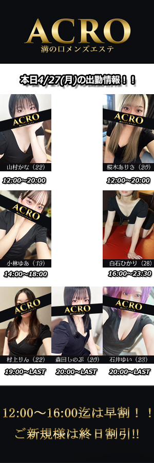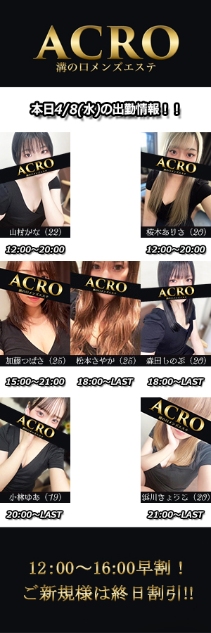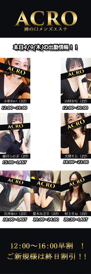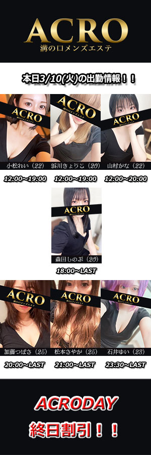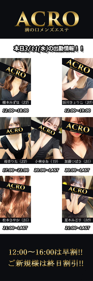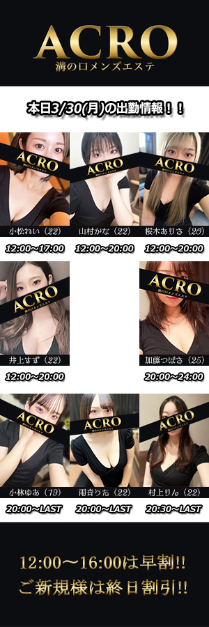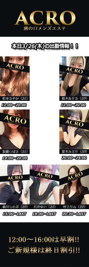 携帯電話:090-2541-5225パソコン・スマホ共通:https://acro-spa.com/お客様のご来店を心よりお待ちしております。 -